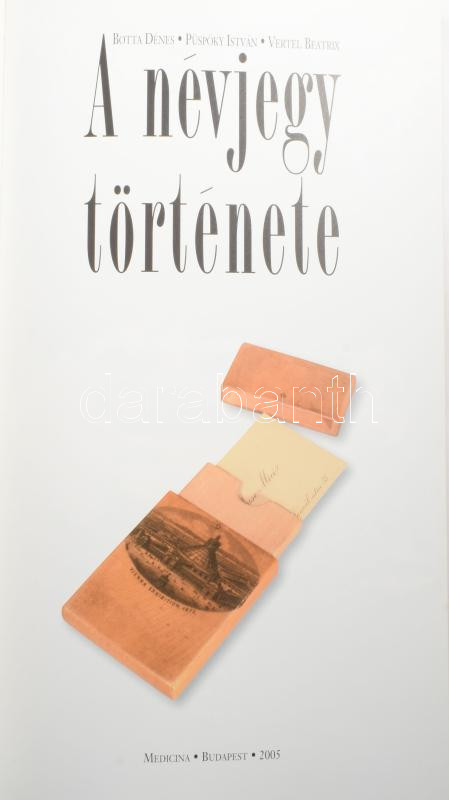 Botta Dénes Püspöky István Vertel Beatrix: A névjegy története. Bp., 2... https://www.darabanth.com/hu/514-Filatelia-kepeslap-numizmatika-mutargy-konyv-papirregiseg-ekszer-aukcio/515.0/Konyvek/Konyvek-Egyeb-ritkasagok~633/Botta-Denes-Puspoky-Istvan-Vertel-Beatrix-A-nevjegy-tortenete-Bp-2005-Medicina-Konyvkia~II3476978