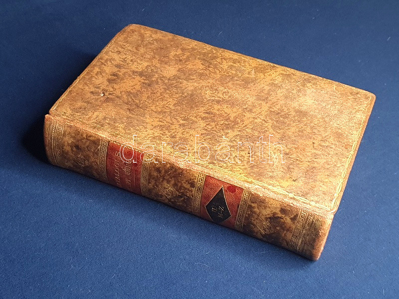 Aranyozott korabeli bÅ‘rkötésben, vörös festésű lapszélekkel, a kötéstáblákon aranyozott keretdÃsszel, a gerincen az aranyozott cÃmfeliratok vörös cÃmkén. Szép példány. 19x12x4,5 cm