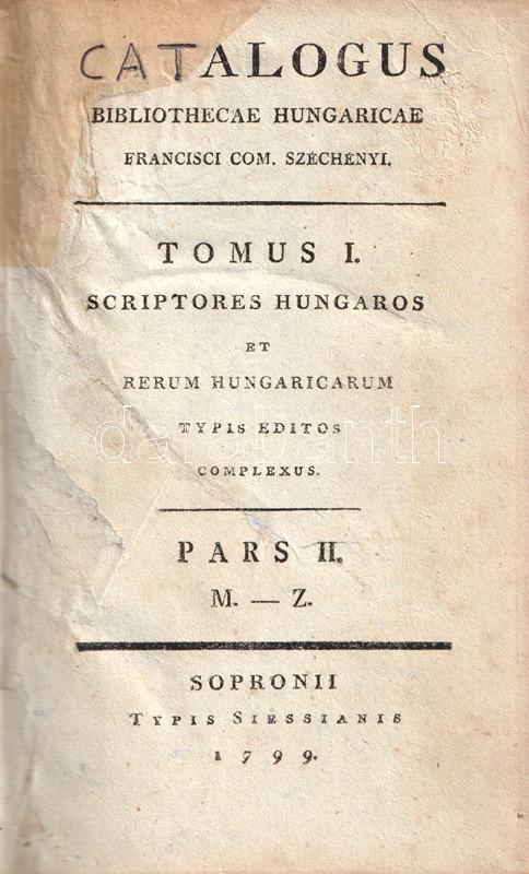 Catalogus bibliothecae Hungaricae Francisci com. Széchényi. Tomus I., Pars II. Scriptores hungaros et rerum hungaricarum M-Z.