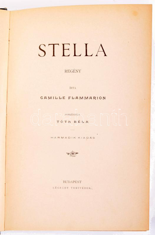Flammarion, Camille: Stella. Bp., Légrády Testvérek. 414p. Egészvászon... https://www.darabanth.com/hu/514-Filatelia-kepeslap-numizmatika-mutargy-konyv-papirregiseg-ekszer-aukcio/515.0/Konyvek/Konyvek-Egyeb-ritkasagok~633/Flammarion-Camille-Stella-Bp-Legrady-Testverek-414p-Egeszvaszon-kotes-kisse-kopottas~II3441085