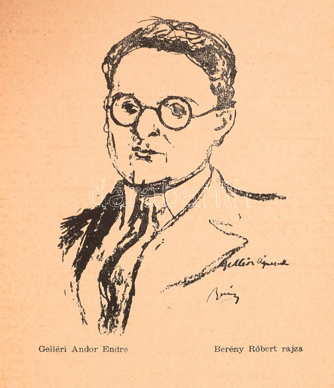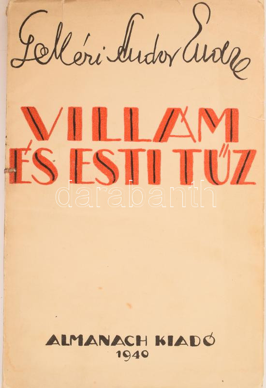 Gelléri Andor Endre: Villám és esti tűz. [Bp., 1940.], Almanach, 95+1 p. Első kiadás. A borító T. Fekete Gizella munkája. Benne Berény Róbert Gelléri Andor Endréről készült rajzával. Kiadói papírkötés, kissé szakadozott borítóval.
