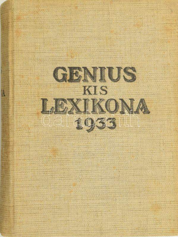 Genius Kis Lexikona. Nyolcszáz képpel és harminckét műmelléklettel. Bp., 1933, Genius. Kiadói egészvászon kötés, belül a gerincnél részben levált, kopottas állapotban.