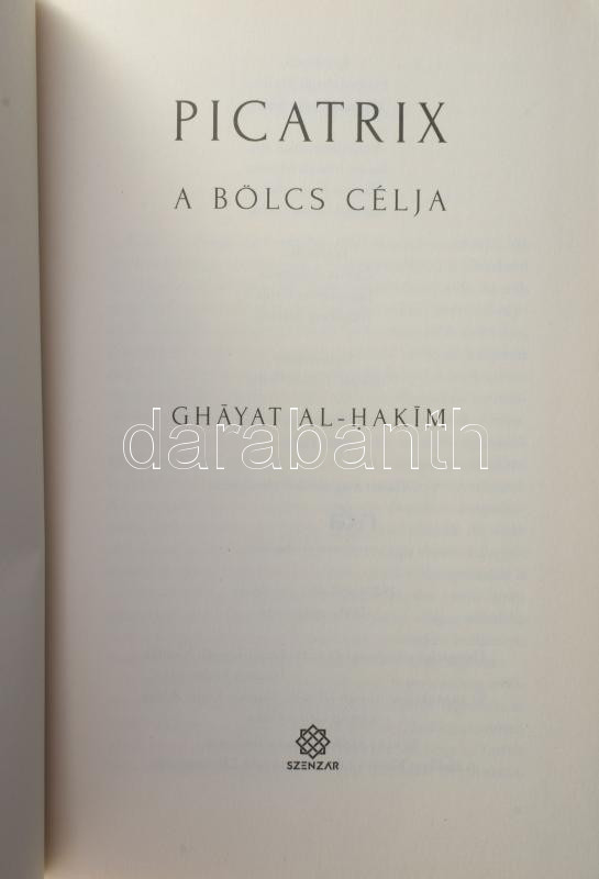 Ghayat Al-Hakim: Picatrix. A bölcs célja. Ford.: Frazer-Imregh Monika,... https://www.darabanth.com/hu/514-Filatelia-kepeslap-numizmatika-mutargy-konyv-papirregiseg-ekszer-aukcio/515.0/Konyvek/Konyvek-Egyeb-ritkasagok~633/Ghayat-Al-Hakim-Picatrix-A-bolcs-celja-Ford-Frazer-Imregh-Monika-Hamvas-Endre-Adam-Biblio~II3478221