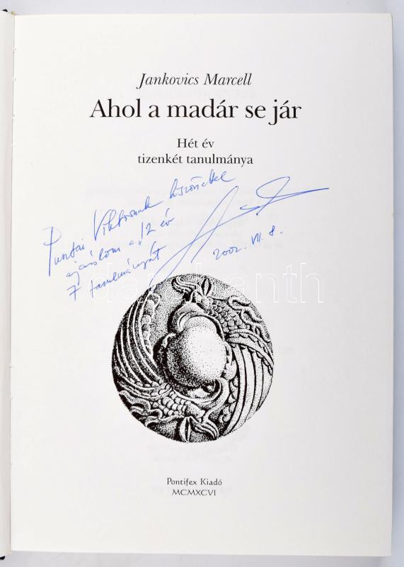 Leírás: Jankovics Marcell: Ahol a madár se jár. Dedikált példány! [Debrecen], 1996., Pontifex Kiadó, 239p. Kiadói kartonált papírkötésben