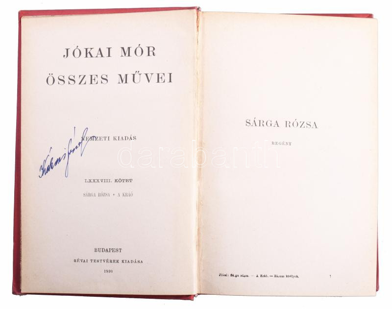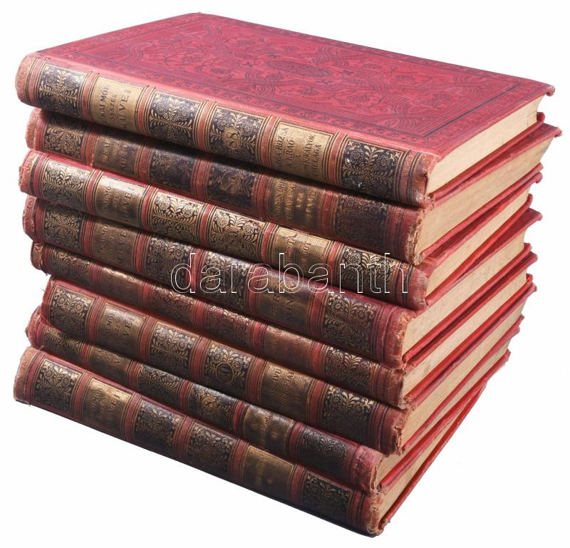 Jókai Mór összes művei. Nemzeti kiadás 8 kötete (LXXXIX., XIX., XCI., LXXXV., LXXXVIII., XXX., LXXXII., LXXVIII. kötetek) Közte három töredék kötettel: Fráter György II., A kőszívű ember fiai II., A lélekidomár II. köt. Bp., 1894-1910., Révai. Kiadói egészvászon-kötések, Gottermayer-kötések, kopott borítókkal, címlaphiányokkal, egy sérült elülső szennylappal, egy kötetben néhány kijáró lappal, egy sérült gerinccel, névbejegyzésekkel, szecessziós ex libris-szekkel.