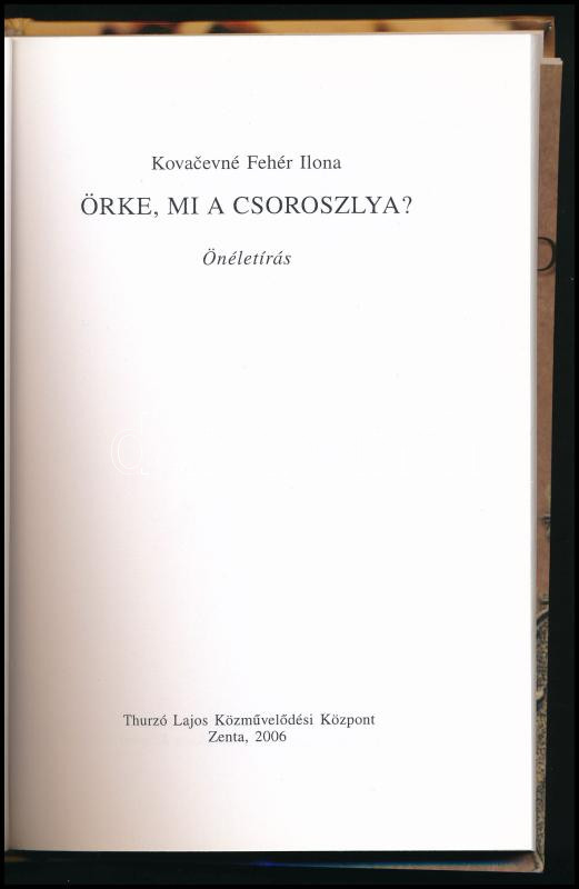 Kovacevné Fehér Ilona: Örke, mi a csoroszlya? Önéletírás. Zenta, 2006,... https://www.darabanth.com/hu/514-Filatelia-kepeslap-numizmatika-mutargy-konyv-papirregiseg-ekszer-aukcio/515.0/Konyvek/Konyvek-Egyeb-ritkasagok~633/Kovacevne-Feher-Ilona-Orke-mi-a-csoroszlya-Oneletiras-Zenta-2006-Thurzo-Lajos-Kozmuv~II3423014