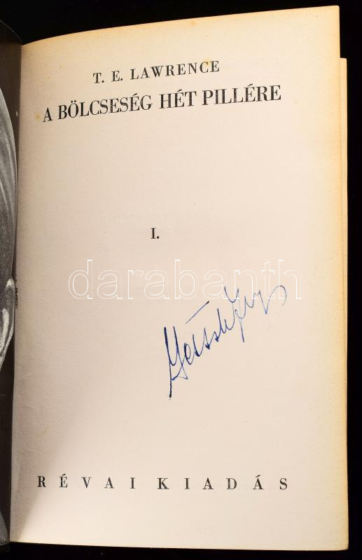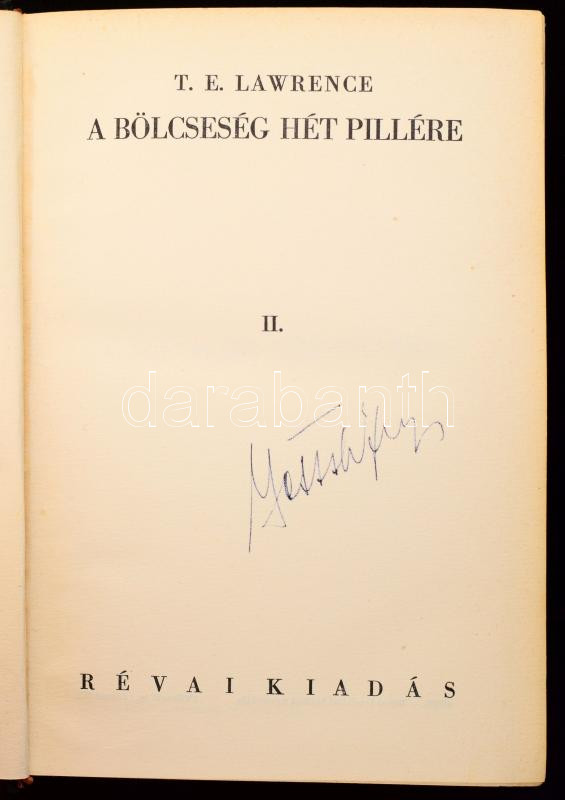 Lawrence, T. E.: A bölcsesség hét pillére I-II. Bp., 1935, Révai. Kiad... https://www.darabanth.com/hu/514-Filatelia-kepeslap-numizmatika-mutargy-konyv-papirregiseg-ekszer-aukcio/515.0/Konyvek/Konyvek-Egyeb-ritkasagok~633/Lawrence-T-E-A-bolcsesseg-het-pillere-I-II-Bp-1935-Revai-Kiadoi-egeszvaszon-kotes~II3402111