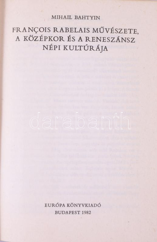 Mihail Bahtyin: Francois Rabelais művészete, a középkor és a reneszánsz népi kultúrája. Bp., 1982, Európa kiadó. Kiadói egészvászon-kötés, kiadói papír védőborítóban