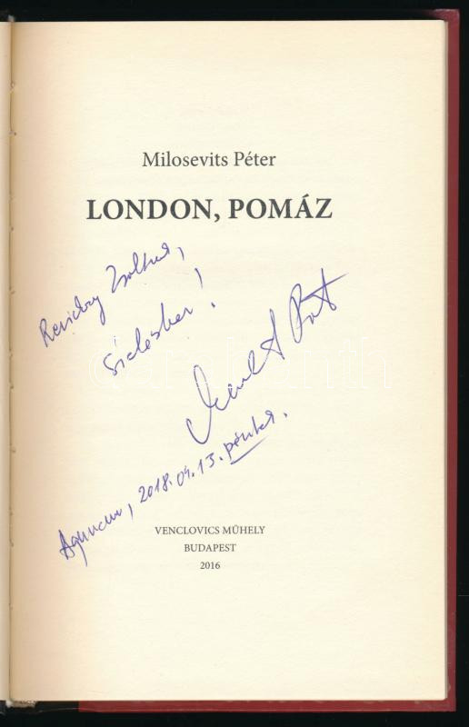 Leírás: Milosevits Péter: London, Pomáz. A szerző által DEDIKÁLT példány! Bp., 2016, Venclovics Műhely. Kiadói kartonált papírkötés.