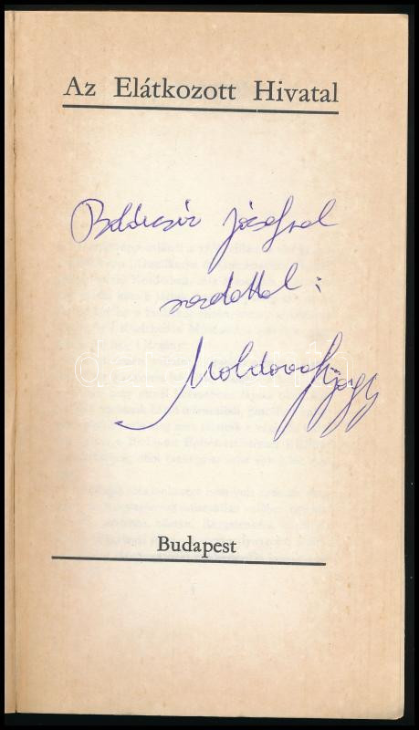 Moldova György: Az Elátkozott Hivatal. A szerző, Moldova György (1934-2022) Kossuth-díjas író által dedikált példány. Bp., 1972, Magvető. Kiadói papírkötés.