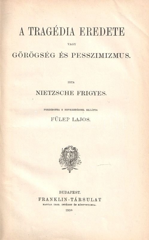 https://www.darabanth.com/hu/514-Filatelia-kepeslap-numizmatika-mutargy-konyv-papirregiseg-ekszer-aukcio/515.0/Konyvek/Konyvek-Egyeb-ritkasagok~633/Nietzsche-Friedrich-Frigyes--A-tragedia-eredete-vagy-gorogseg-es-pesszimizmus-Forditotta~II3481848