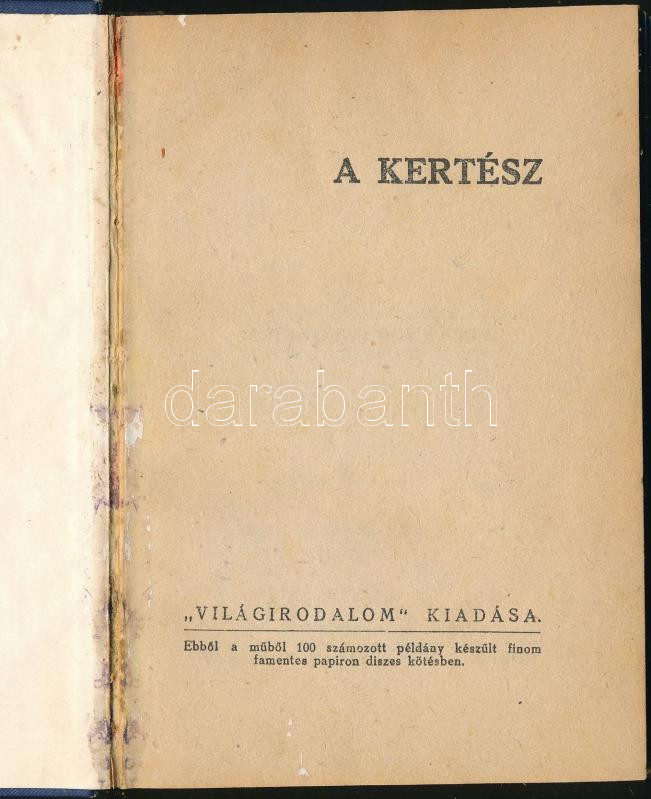 Rabindranath Tagore: A kertész. Angolból fordította: Bartos Zoltán. Bp... https://www.darabanth.com/hu/514-Filatelia-kepeslap-numizmatika-mutargy-konyv-papirregiseg-ekszer-aukcio/515.0/Konyvek/Konyvek-Egyeb-ritkasagok~633/Rabindranath-Tagore-A-kertesz-Angolbol-forditotta-Bartos-Zoltan-Bp-Vilagirodalom-Felva~II3440990