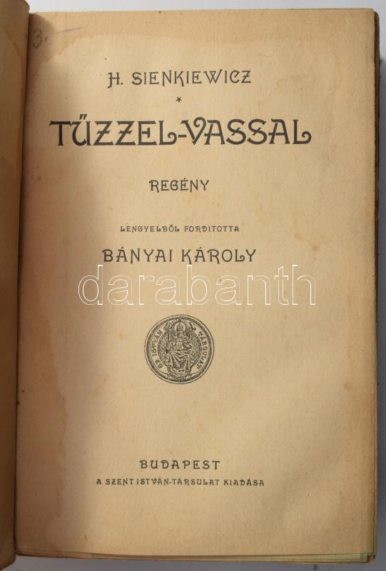 Sienkiewicz, [Henryk]: Tűzzel-vassal. Ford.: Bányai Károly. Bp., [1929... https://www.darabanth.com/hu/514-Filatelia-kepeslap-numizmatika-mutargy-konyv-papirregiseg-ekszer-aukcio/515.0/Konyvek/Konyvek-Egyeb-ritkasagok~633/Sienkiewicz-Henryk-Tuzzel-vassal-Ford-Banyai-Karoly-Bp-1929-Szent-Istvan-Tarsulat-~II3475677