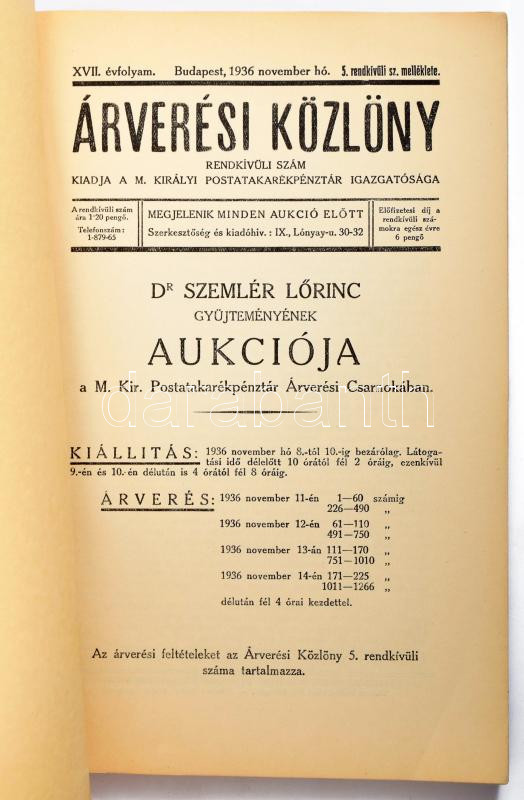 Bp. 1936. Postatakarékpénztár 96 l.+2t. A gyűjtemény többek között Szemlér Mihály festő 194 képét, rajzát és mintegy 500 bibliofil könyvet sorol fel, összesen 1266 tételt.