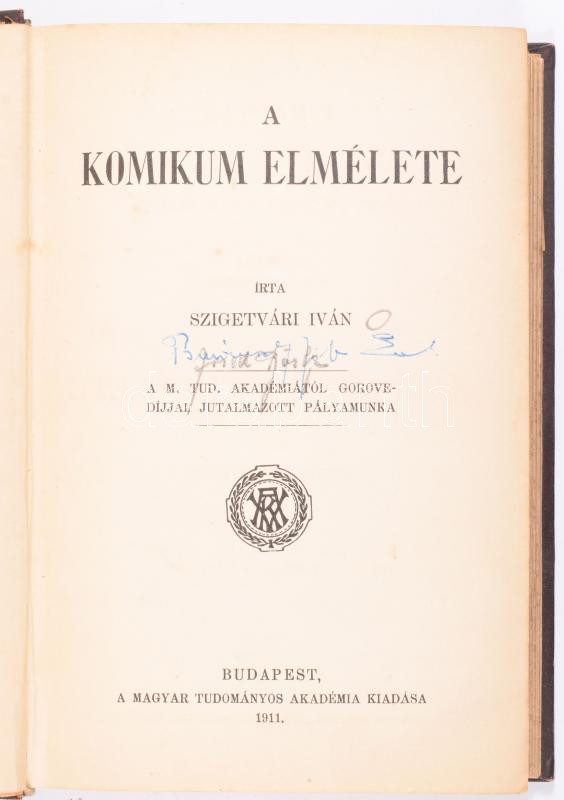 Szigetvári Iván: A komikum elmélete. Budapest 1911. MTA, 432p. Kiadói ... https://www.darabanth.com/hu/514-Filatelia-kepeslap-numizmatika-mutargy-konyv-papirregiseg-ekszer-aukcio/515.0/Konyvek/Konyvek-Egyeb-ritkasagok~633/Szigetvari-Ivan-A-komikum-elmelete-Budapest-1911-MTA-432p-Kiadoi-vaszonkotesben~II3482230