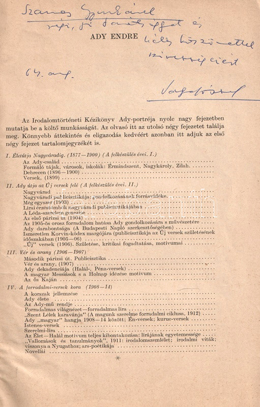 Ady Endre. [Irodalomtörténeti pályakép a költő utolsó öt évéről.] (Dedikált.)