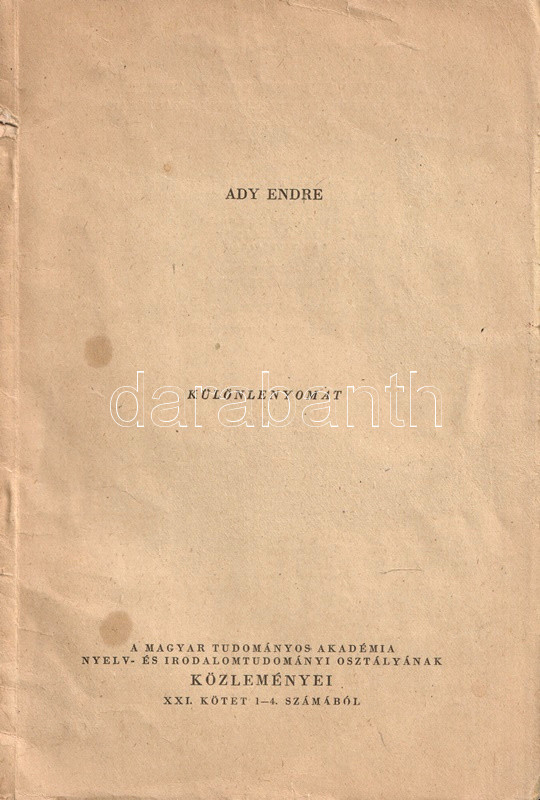 (Különlenyomat a Magyar Tudományos Akadémia Nyelv- és Irodalomtudományi Osztályának Közleményei XXI. kötetének 1-4. számából.)