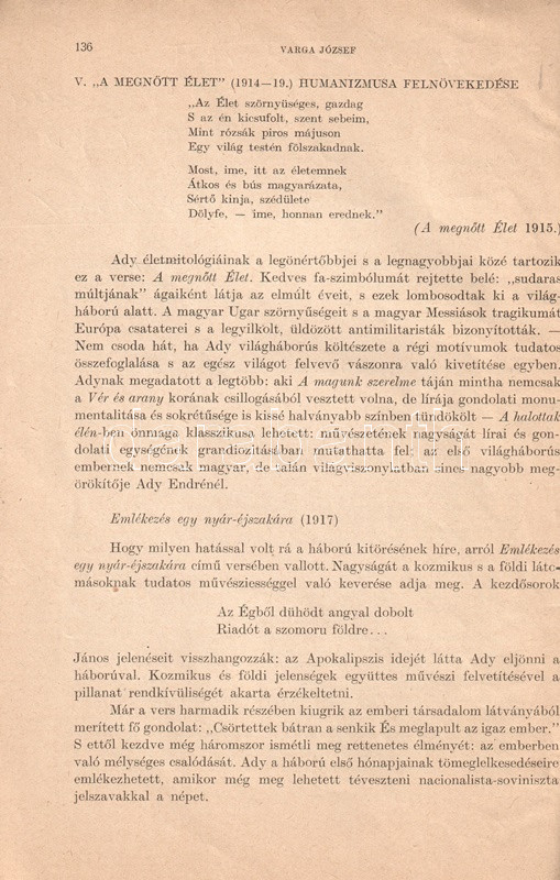 Varga József (1929-1993) irodalomtörténész, Ady-kutató, "A magyar irodalom története" című, 1964-1966 között kiadott hatkötetes akadémiai irodalomtörténeti szintézis Ady-fejezeteinek szerzője. Az itt közölt szöveg nagyjából megegyezik az egy évvel később kötetbe került változattal.
