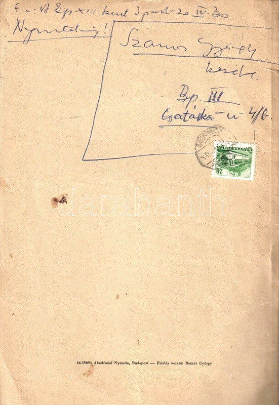Prov.: Szamos György történész, antikvárius.