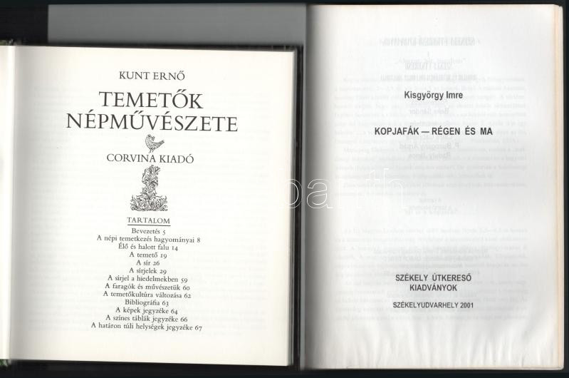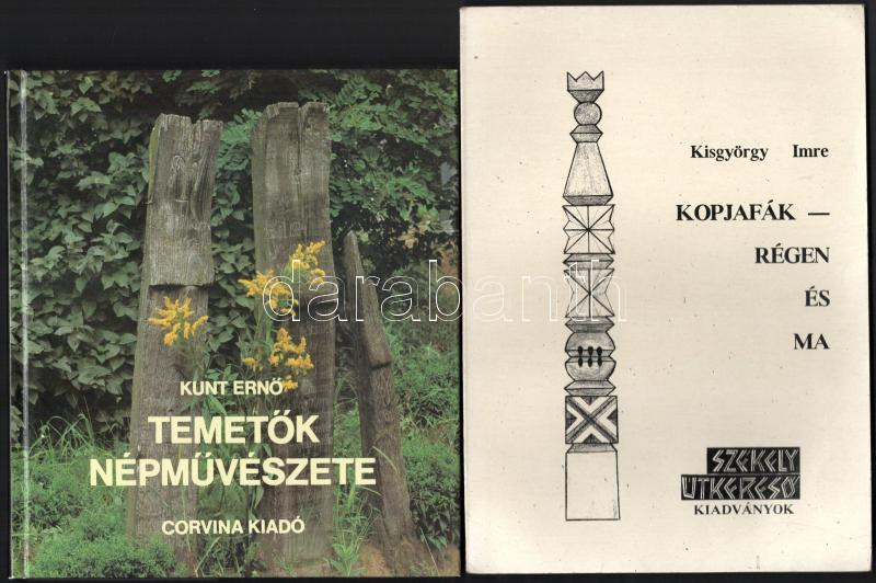 Leírás: 2 db - Kunt Ernő: Temetők népművészete. 1983, Corvina. + Kisgyörgy Imre: Kopjafák - régen és ma. Székelyudvarhely, 2001, Székely Útkereső Kiadványok. Kiadói kartonált és papírkötés, jó állapotban.