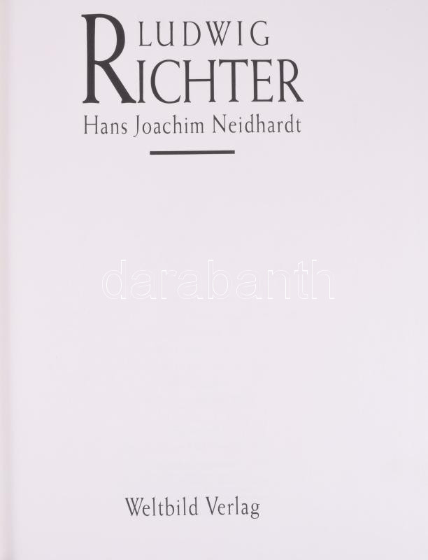 Leírás: Hans Joachim Neidhardt: Ludwig Richter. Augsburg, 1996, Weltbild Verlag. Gazdag képanyaggal illusztrálva. Német nyelven. Kiadói kartonált papírkötés.