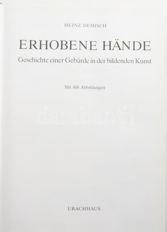 Heinz Demisch: Erhobene Hände. Geschichte einer Gebärde in der bildenden Kunst. Stuttgart, 1984, Urachhaus. Fekete-fehér képekkel illusztrálva. Német nyelven. Kiadói egészvászon-kötés, kiadói papír védőborítóban.