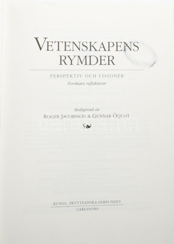Leírás: Jacobsson & Öquist: Vetenskapens: Vetenskapens rymder. Perspektiv och visioner.