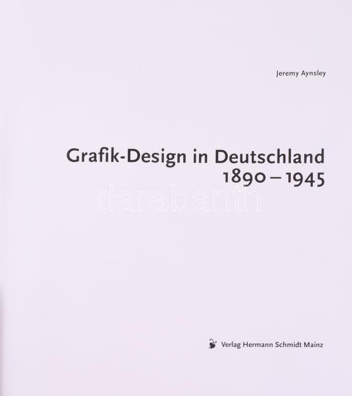 Jeremy Aynsley: Grafik-Design in Deutschland 1890-1945. Mainz, 2000, Hermann Schmidt. Gazdag képanyaggal illusztrálva. Német nyelven. Kiadói egészvászon-kötés, kiadói papír védőborítóban.