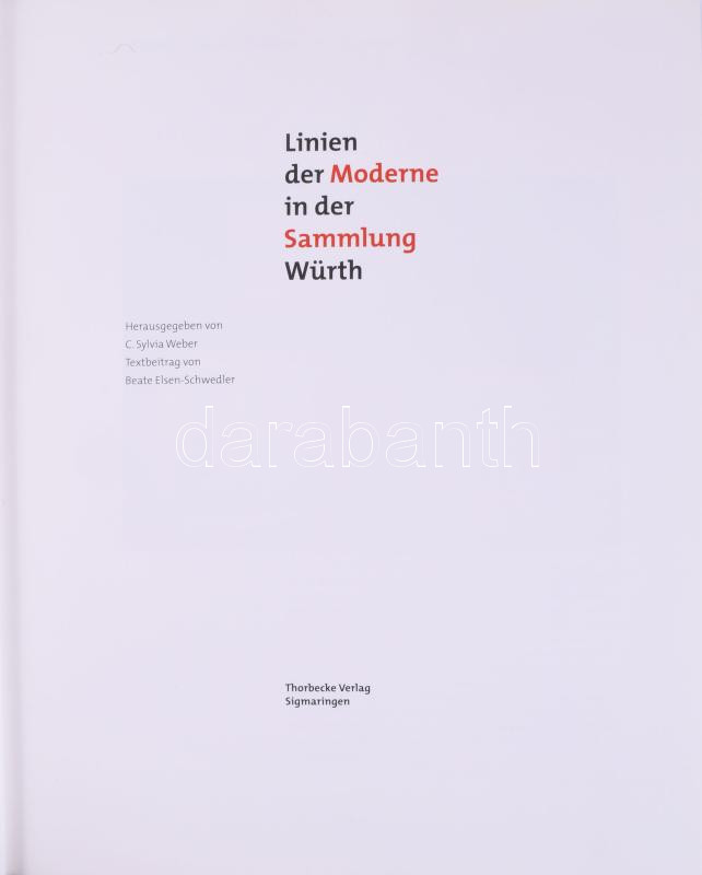 Linien der mOderne in der Sammlung Würth. Hrsg. von C. Sylvia Weber. Sigmaringen,1997,Thorbecke Verlag. Német nyelven. Gazdag képanyaggal illusztrált. Kiadói papírkötés.