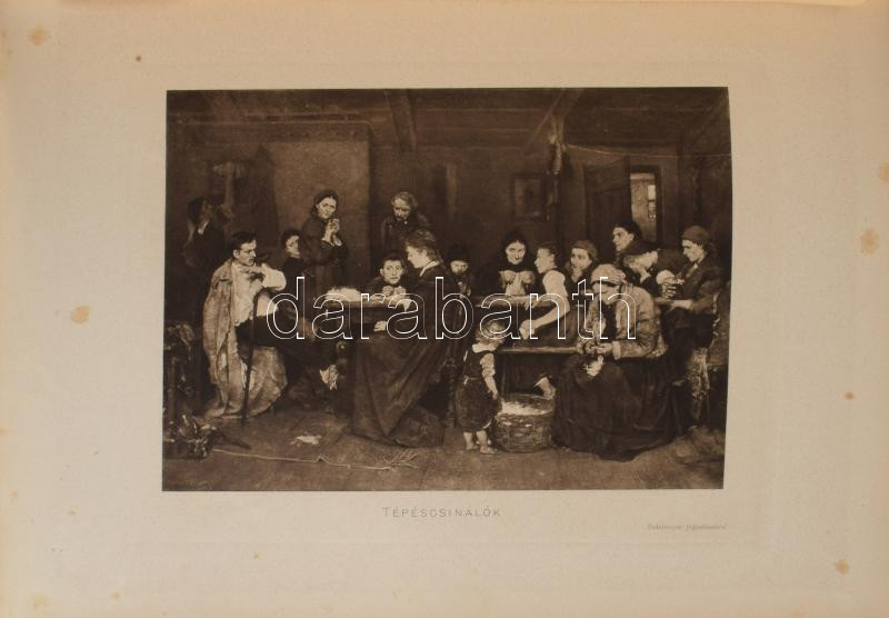 Malonyay Dezső: Munkácsy Mihály élete és munkái. 24 műmelléklettel és 110 képpel, vázlattal. Bp., 1898, Singer és Wolfner. Benne: Munkácsy Mihály (1844-1900): Konyhában c. egyetlen rézkarcával, papír, jelzett a karcon, 20×28 cm. Kiadói szecessziós egészvászon Gottermayer-kötés, gerinc levált, fém plakettel, előzéklap kijár, viseltes állapotban.