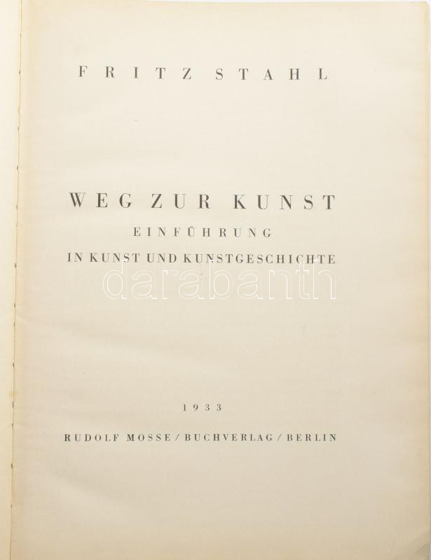 Stahl, Fritz: Weg zur Kunst. Einführung in Kunst und Kunstgeschichte. Berlin, 1933, Rudolf Mosse, 494+[2] p. Gazdag fekete-fehér képanyaggal illusztrálva. Német nyelven. Kiadói egészvászon-kötés.