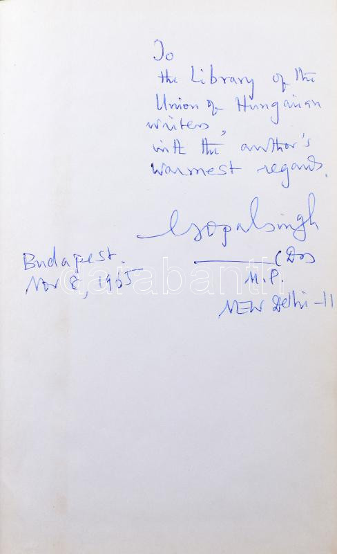 Gopal Singh (1917?1990): indiai politikus, államférfi, író, költő, műfordító, kritikus, magát szabadságharcosnak nevezte. Az indiai parlament felsőházának tagja (1962?1968), Goa kormányzóhelyettese (1984?1987), Goa kormányzója (1987?1989), Nagaland kormányzója (1989?1990). Lefordította angolra a Granth Szahibot, a szikh vallás szentírását (vallási himnuszok csaknem 6000 darabos gyűjteménye). Az indiai nemzeti kisebbségek bizottságának vezetője, volt India bulgáriai és a karibi térség országaiba akkreditált nagykövete, sokat tett a vallások közötti párbeszédért, megértésért. Jézusról írt hosszú, epikus verse (The Man Who Never Died, 1969) olyannyira elnyerte VI. Pál pápa tetszését, hogy a Vatikáni Rádióban részleteket is felolvastak belőle. Pandzsábi nyelven írt verseit maga fordította le angolra, a kötet először 1964-ben jelent meg, Unstruck Melody címmel. 1965 novemberében egy indiai parlamenti jószolgálati küldöttség tagjaként járt Magyarországon, ekkor dedikálta a könyvet.