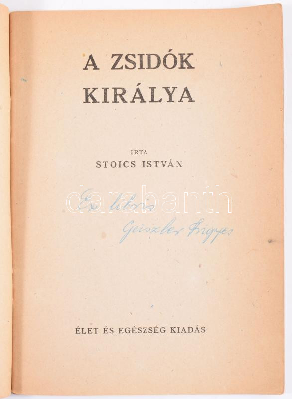 Stoics István: A zsidók királya. h.n., é.n., Élet és Egészség Kiadása.... https://www.darabanth.com/hu/514-Filatelia-kepeslap-numizmatika-mutargy-konyv-papirregiseg-ekszer-aukcio/515.0/Konyvek/Konyvek-Judaika~627/Stoics-Istvan-A-zsidok-kiralya-hn-en-Elet-es-Egeszseg-Kiadasa-Kiadoi-papirkote~II3482293