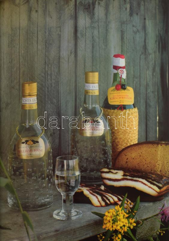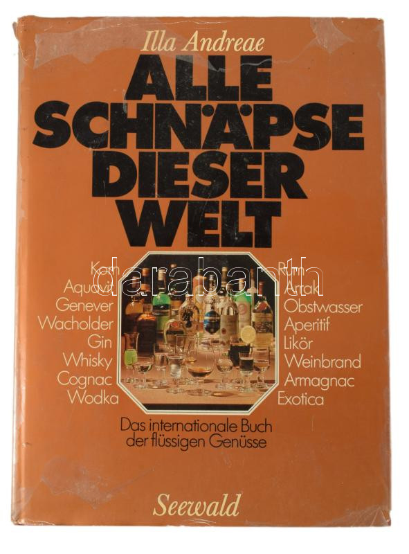 Illa Andreae:Alle Schnäpse dieser Welt. Das internationale Buch der flüssigen Genüsse. Stuttgart,1973,Seewald Verlag. Német nyelven. Színes képekkel illusztrált. Kiadói egészvászon-kötés, sérült kiadói papír védőborítóban.