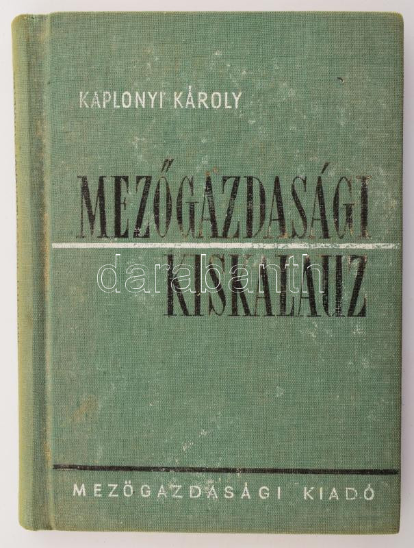 Leírás: Kaplonyi Károly: Mezőgazdasági kiskalauz. Bp., 1962., Mezőgazdasági. Kiadói egészvászon-kötés, kopott borítóval.