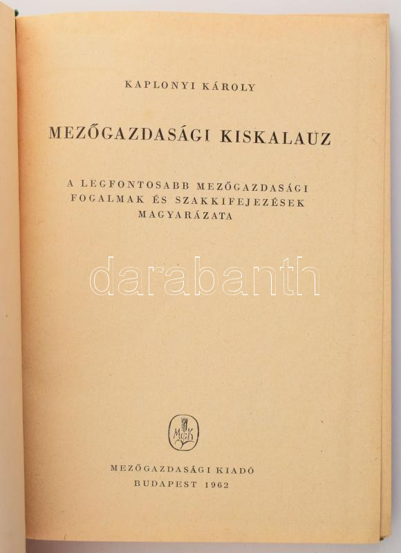 Kaplonyi Károly: Mezőgazdasági kiskalauz. Bp., 1962., Mezőgazdasági. K... https://www.darabanth.com/hu/514-Filatelia-kepeslap-numizmatika-mutargy-konyv-papirregiseg-ekszer-aukcio/515.0/Konyvek/Konyvek-Konyha-es-kert~620/Kaplonyi-Karoly-Mezogazdasagi-kiskalauz-Bp-1962-Mezogazdasagi-Kiadoi-egeszvaszon-kot~II3408980