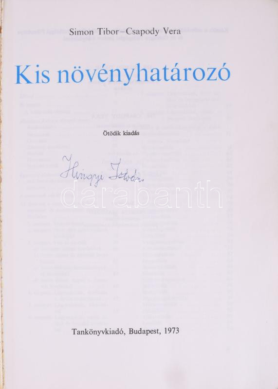 Simon Tibor - Csapody Vera: Kis növényhatározó. Bp., 1973, Tankönyvkia... https://www.darabanth.com/hu/514-Filatelia-kepeslap-numizmatika-mutargy-konyv-papirregiseg-ekszer-aukcio/515.0/Konyvek/Konyvek-Konyha-es-kert~620/Simon-Tibor-Csapody-Vera-Kis-novenyhatarozo-Bp-1973-Tankonyvkiado-Kiadoi-papirkote~II3459449