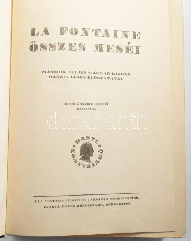 La Fontaine összes meséi. Bp., Dante. Félvászon kötés, gerinc sérült, ... https://www.darabanth.com/hu/514-Filatelia-kepeslap-numizmatika-mutargy-konyv-papirregiseg-ekszer-aukcio/515.0/Konyvek/Konyvek-Mesekonyvek-ifjusagi-irodalom~631/La-Fontaine-osszes-mesei-Bp-Dante-Felvaszon-kotes-gerinc-serult-kopottas-allapotban~II3475968