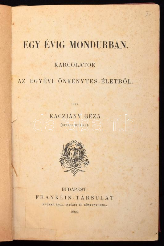 Kacziány Géza: Egy évig mondurban. Karcolatok az egyévi önkénytes-életből.