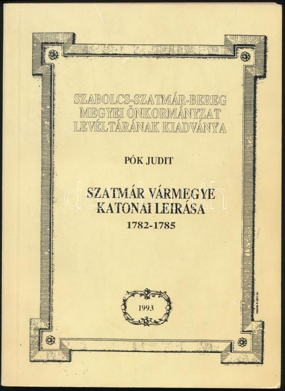 Pók Judit: Szatmár vármegye katonai leírása 1782-1785. Nyíregyháza, 19... https://www.darabanth.com/hu/514-Filatelia-kepeslap-numizmatika-mutargy-konyv-papirregiseg-ekszer-aukcio/515.0/Konyvek/Konyvek-Militaria-Katonasag~618/Pok-Judit-Szatmar-varmegye-katonai-leirasa-1782-1785-Nyiregyhaza-1993-Megjelent-600-peld~II3481132