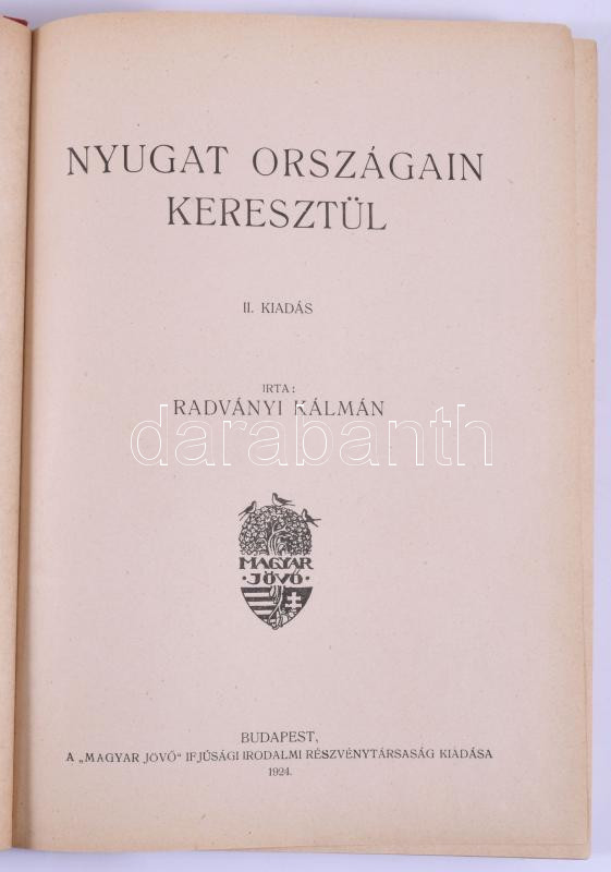 Radványi Kálmán: Nyugat országain keresztül. Bp., 1924, Magyar Jövő If... https://www.darabanth.com/hu/514-Filatelia-kepeslap-numizmatika-mutargy-konyv-papirregiseg-ekszer-aukcio/515.0/Konyvek/Konyvek-Militaria-Katonasag~618/Radvanyi-Kalman-Nyugat-orszagain-keresztul-Bp-1924-Magyar-Jovo-Ifjusagi-Irodalmi-Resz~II3480992