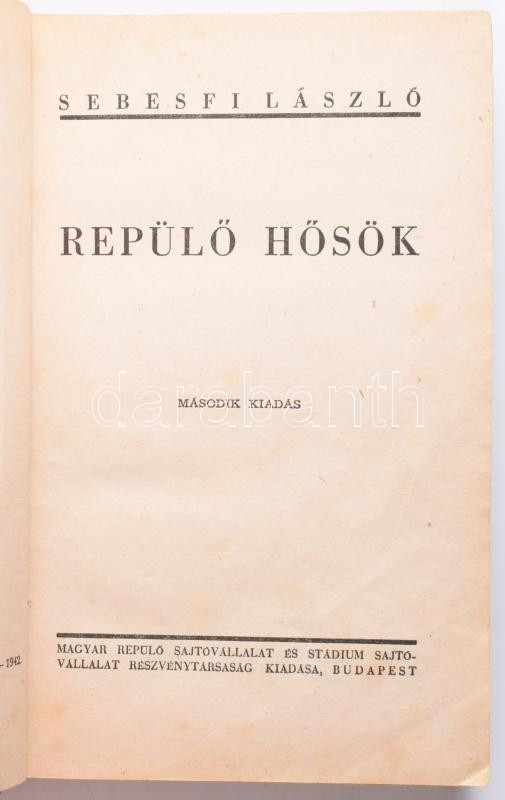 Sebesfi László: Repülő hősök. A Repülő Ember 6. köt. Bp., 1942., Magyar Repülő Sajtóvállalat - Stádium (Stádium-ny.), 175+1 p. + 8 (fekete-fehér képtáblák) t. 2. kiadás.