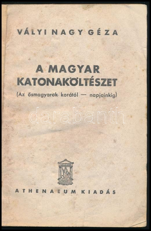 Vályi Nagy Géza: A magyar katonaköltészet (Az ősmagyarok korától napja... https://www.darabanth.com/hu/514-Filatelia-kepeslap-numizmatika-mutargy-konyv-papirregiseg-ekszer-aukcio/515.0/Konyvek/Konyvek-Militaria-Katonasag~618/Valyi-Nagy-Geza-A-magyar-katonakolteszet-Az-osmagyarok-koratol-napjainkig-Bp-Athenaeum~II3480885