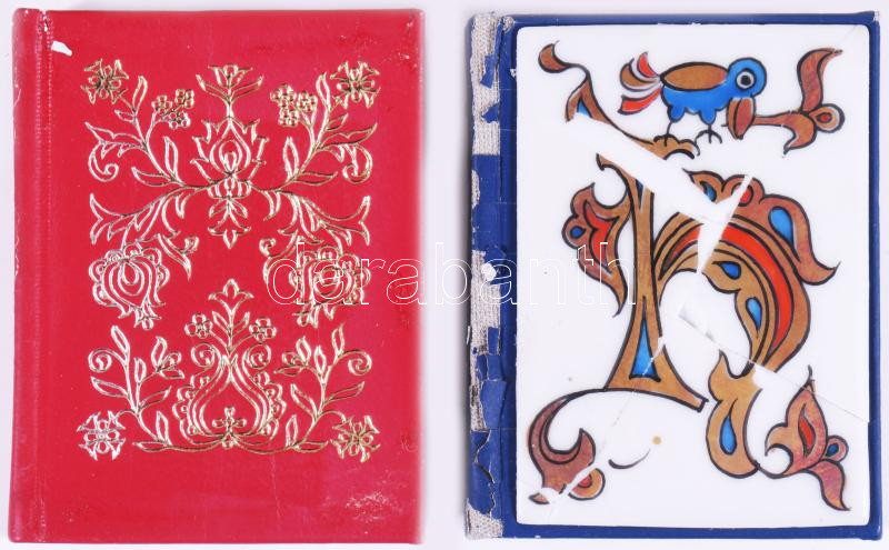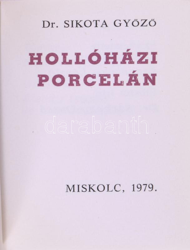 Dr. Sikota Győző: Hollóházi porcelán. Miskolc, 1979, Miniatűrkönyv Gyűjtők Klubja - Hollóházi Porcelángyár. Színes fotókkal. Számozott (381./1900) példány, és számozott (381./1000) magyar nyelvű kiadások. Kereskedelmi forgalomba nem került. Kiadói nyl-kötés és kiadói nyl-kötés, herendi porcelán plakettel, de kopott borítókkal, sérült, törött plakettel.