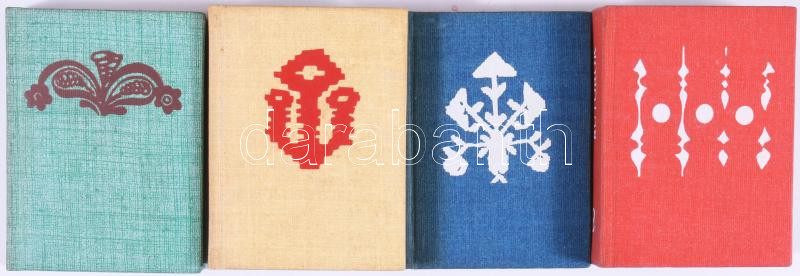 Leírás: Gecsei Lajos: Békés Megye Néprajza 1-4. kötet. 1. köt.: Butéliák. 2.köt.: Szőttesek. 3. köt.: Bútorok. 4.: Hímzések. Békéscsaba, 1973-1975, Rózsa Ferenc Gimnázium és Szakközépiskola. Kiadói egészvászon kötések.