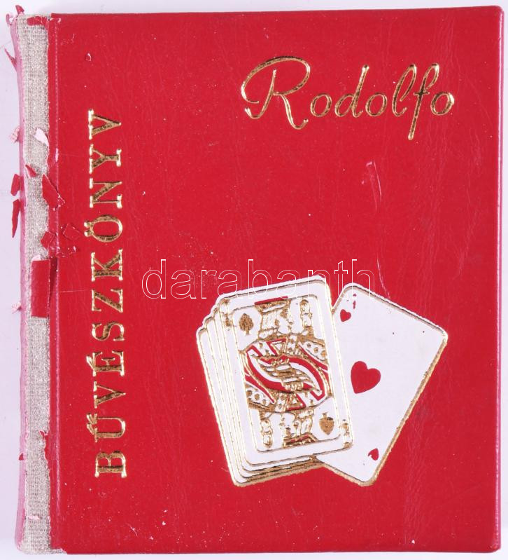 Leírás: Rodolfo: Bűvészkönyv. (Minikönyv). H.n., 1978, Miniatűr Könyvgyűjtők Klubja. Számozott (111./400) példányban. Könyvárusi forgalomba nem került. Kiadói műbőr-kötés, kopott borítóval.