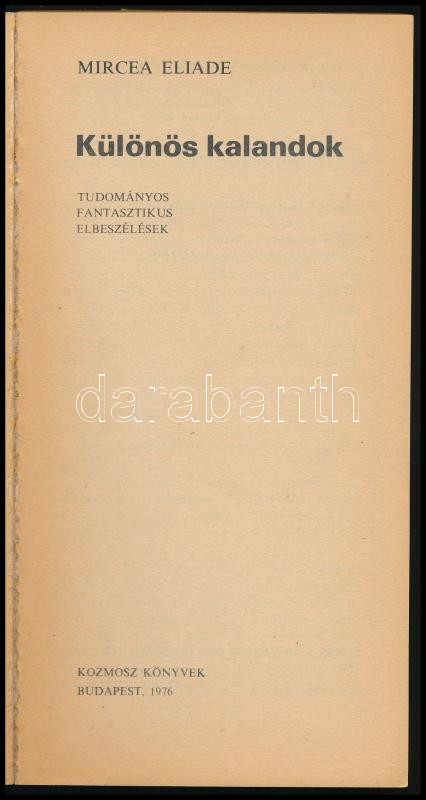 Mircea Eliade: Különös kalandok. Kozmosz Könyvek, 1976 Kiadói papírköt... https://www.darabanth.com/hu/514-Filatelia-kepeslap-numizmatika-mutargy-konyv-papirregiseg-ekszer-aukcio/515.0/Konyvek/Konyvek-Sci-fi-fantasy-es-szerepjatek~632/Mircea-Eliade-Kulonos-kalandok-Kozmosz-Konyvek-1976-Kiadoi-papirkotesben~II3458909
