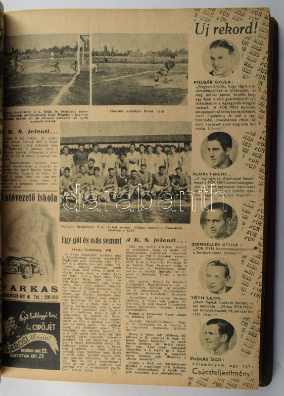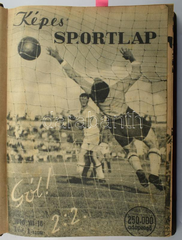 1946 A Képes Sportlap teljes évfolyama: I. évf. 1-25. sz., 1946. júl. 16. - dec. 31., benne a fiatal Puskás Ferenccel, valamint egyéb érdekes hírekkel és képekkel. Félvászon-kötésben.