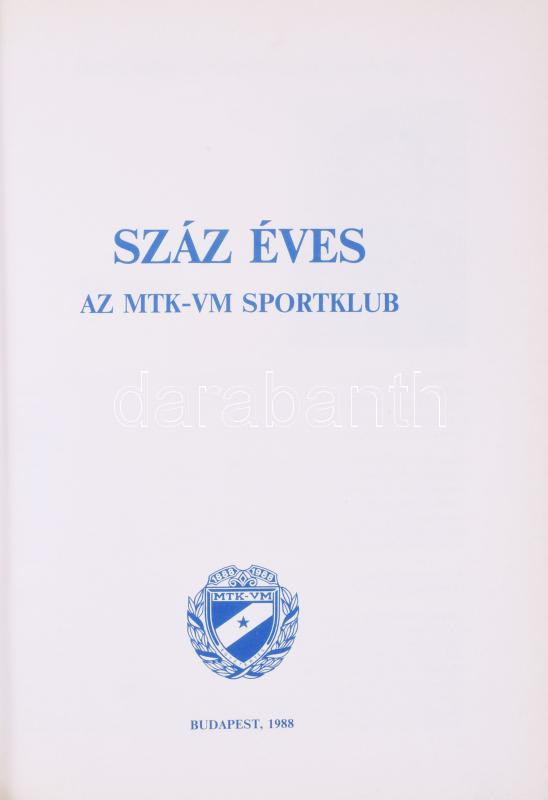 Barcs Sándor (szerk.): Száz éves az MTK-VM Sportklub. Bp., 1988, MTI. Fotókkal illusztrált kötet. Kiadói papírkötés.