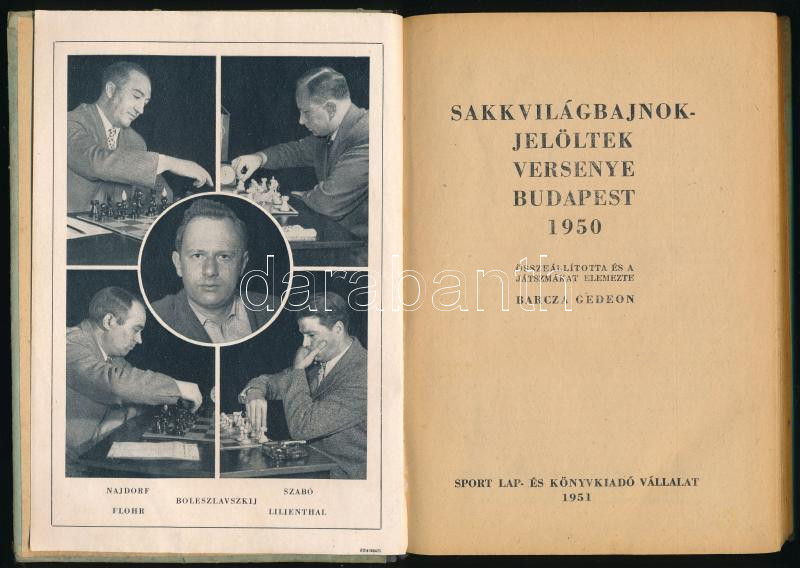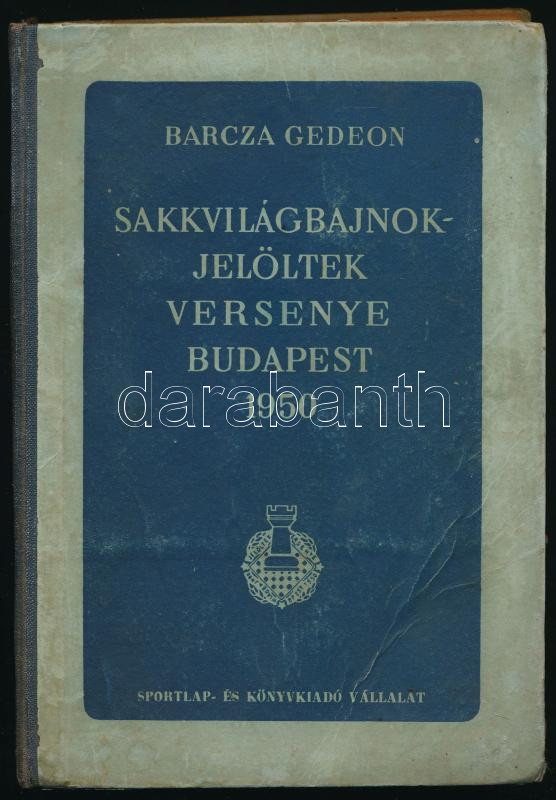 Barcza Gedeon: Sakkvilágbajnok-jelöltek versenye Budapest 1950. Bp., Sportlap- és Könyvkiadó Vállalat. Félvászon kötés, kopottas állapotban.